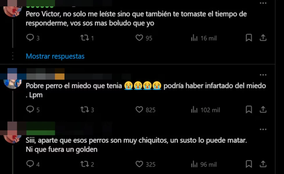 “La pelotuda y el pelotudo de Joel metieron al perrito debajo del agua. Ser así de irresponsable con las mascotas, como si fueran un juguete, también es maltrato animal”, denunció una persona en X, a la par de una marea de mensajes en repudio de la parejita y su accionar.