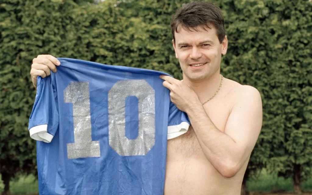 Steve Hodge es quien la subasta y el jugador de la selección confesó: "Soy el orgulloso propietario de esta prenda desde hace más de 35 años, desde que Diego y yo nos intercambiamos las camisetas en el túnel después del famoso partido. Fue un privilegio absoluto haber jugado contra uno de los más grandes y magníficos jugadores de fútbol de todos los tiempos".