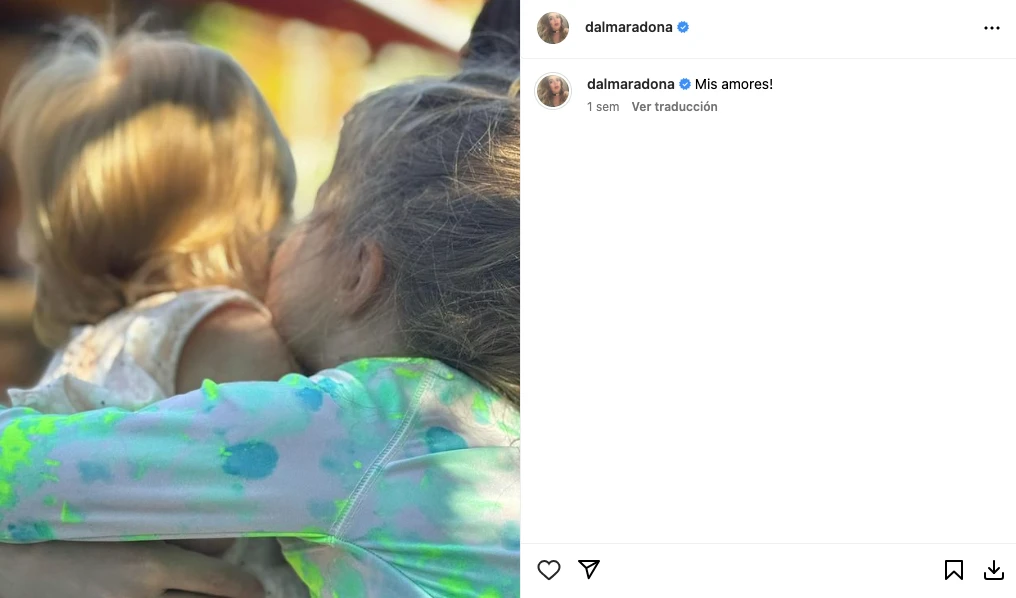 Dalma Maradona mostró a sus dos hijas con una postal que llegó al corazón de todos. Para los que creen que una imagen vale más que mil palabras, el posteo de las nenas en redes sociales impactó entre los miles de seguidores de la hermana de Gianinna. "Mis amores".