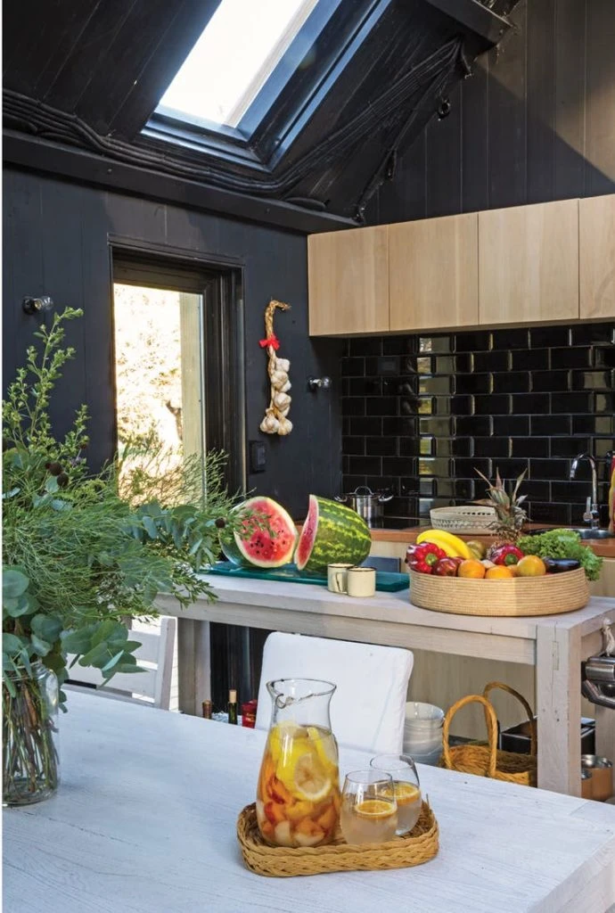 Por su parte, la cocina y el living están integrados y tienen muebles fabricados en Córdoba por Pablo Rolotti, un amigo cercano a la familia Rivero. En el living, además, descansan dos sillones de cuero escandinavos que eran de Elda, la abuela paterna de Calu.