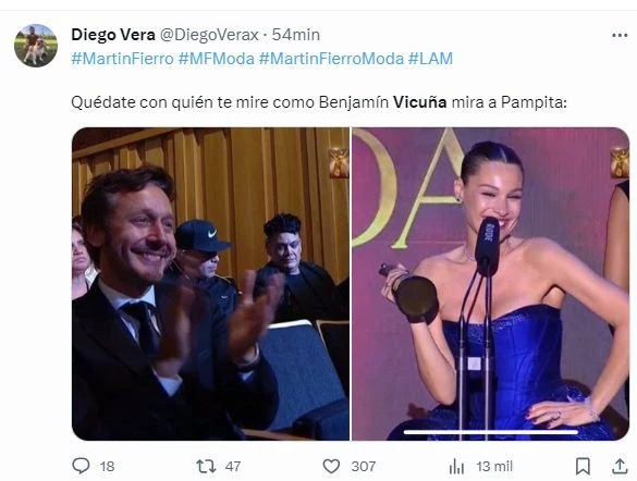 Es por eso que ante los premios que se llevó Pampita, muchos bromearon con el doble sentido. Otro tema que no pasó por alto es cómo Benjamín la aplaudió y miró especialmente a la mamá de sus hijos cuando pasó al escenario.