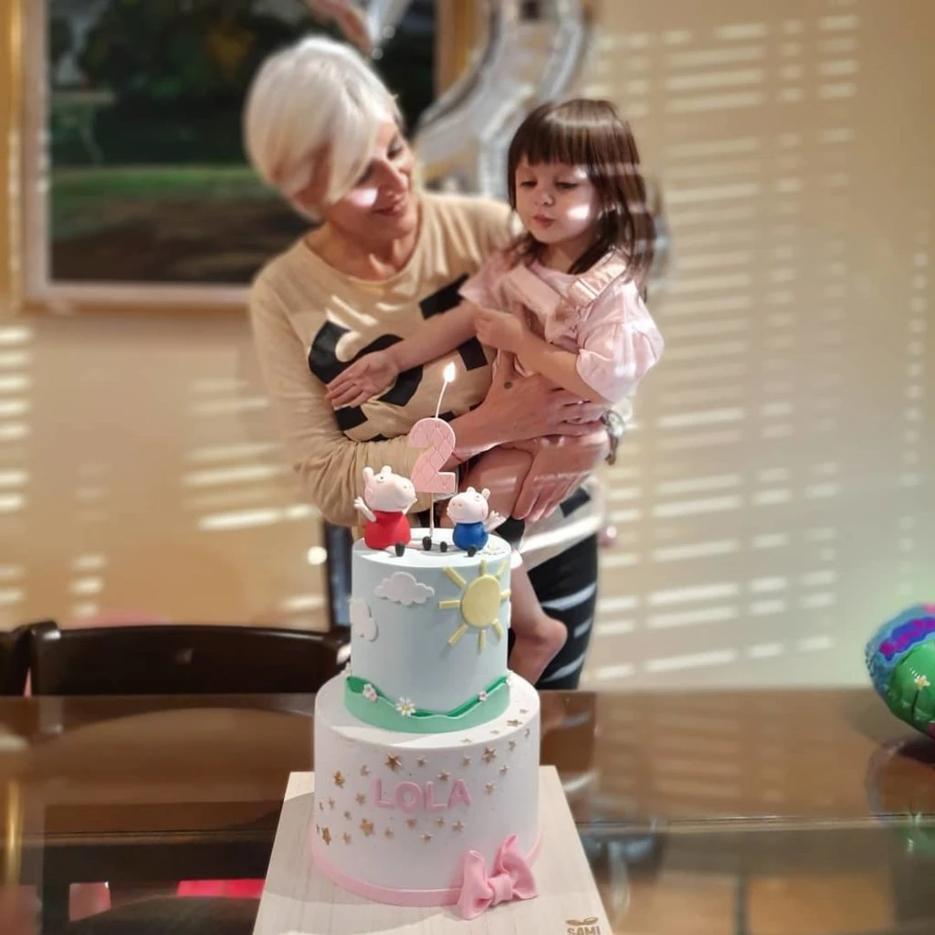 Además del cátering dulce y las sorpresitas artesanales para los amiguitos de Lola que no pudieron asistir al festejo, la cumpleañera recibió una impresionante torta de Samanta Casais, finalista de Bake Off. La torta de dos niveles también tuvo la temática de Pepa, en el piso inferior el fondant blanco estaba decorado con estrellas y el nombre de la cumpleañera en letras rosadas. El nivel superior recreaba uno de los paisajes característicos del dibujito animado. Sobre la torta, muñequitos de Pepa y sus amigos acompañaban la velita de los dos años.
