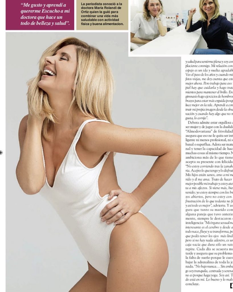 Con el destape de las fotos sensuales, Débora reveló que se siente conforme consigo misma y que con el paso del tiempo aprendió a llevarse mejor con su cuerpo: “Veo el paso de los años y cuando miro las fotos viejas, me doy cuenta que ahora estoy mejor. Me gusto y aprendí a quererme. Escucho a mi doctora que hace un todo de belleza y salud”.