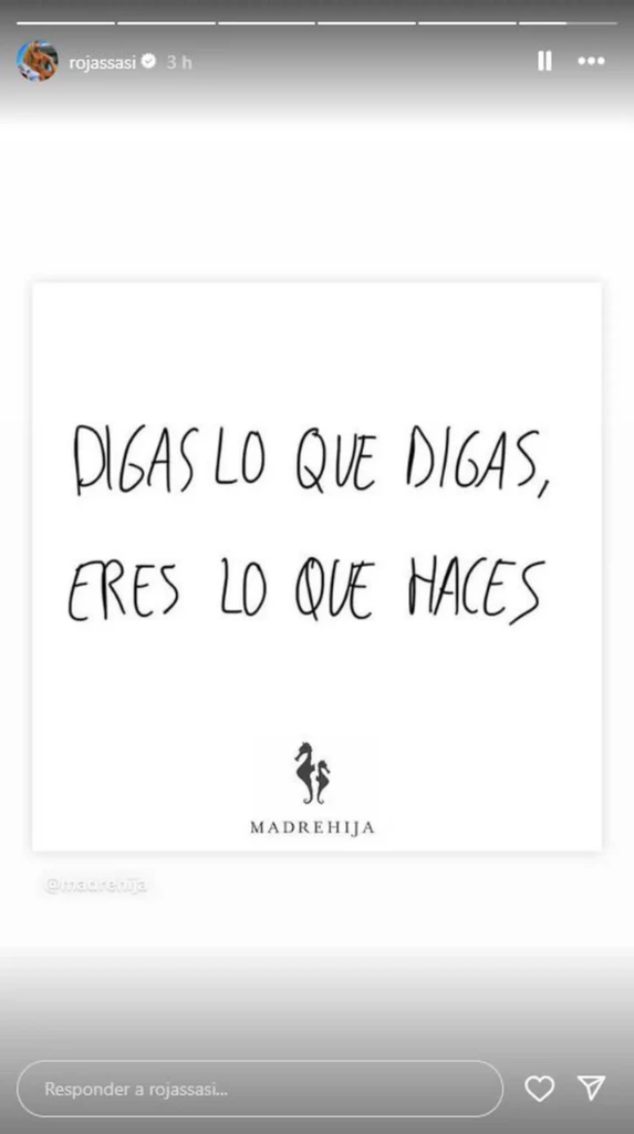 “Digas lo que digas, eres lo que haces”, disparó Rojas. Al ver eso sus seguidores, comenzaron a consultar si tuvo o no algo que ver respecto a la separación de Luciano y Vigna, de quienes habló luego de que lo confirmaran.