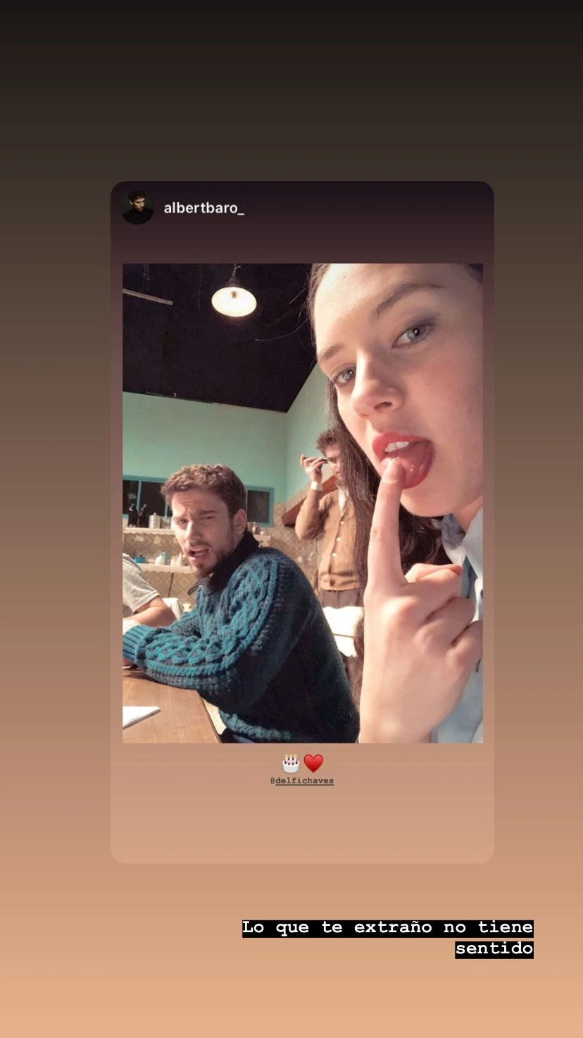 Después de dos meses de finalizada la ficción que marcó un hito por su calidad de producción, y que promete continuar con más temporadas, se produjo un intercambio público muy tierno entre Delfina y Albert. El catalán le dedicó un saludo muy dulce a Chaves, con el motivo de su cumpleaños número veinticuatro. A través de una storie de Instagram, el español subió una foto de ambos muy risueña, con gestos muy peculiares, y dos emojis: una torta y un corazón. ¿Cuántas mujeres suspirarían con una dedicatoria así?