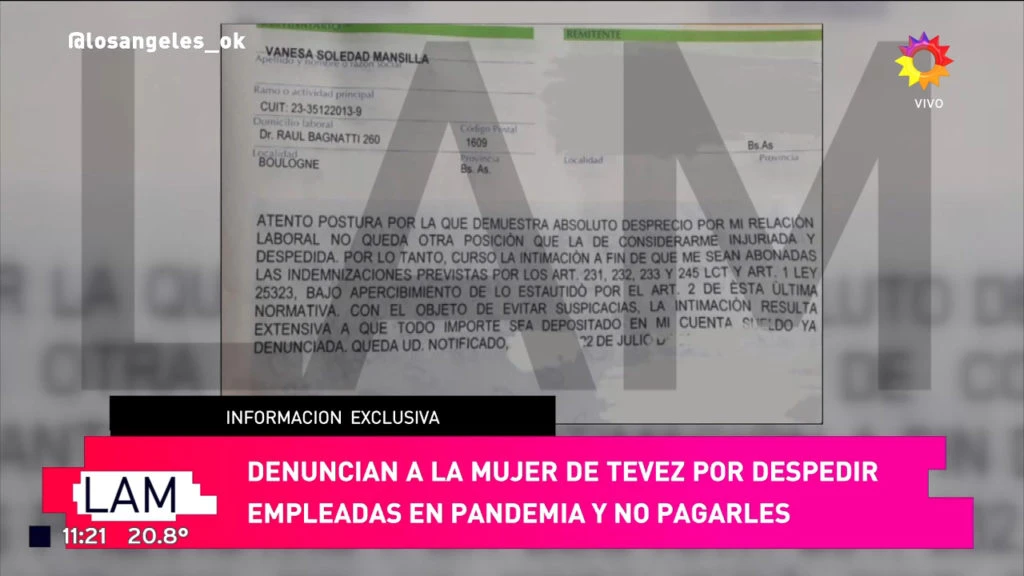 “Hay dos empleadas que la demandan a Vanesa y le están mandando una carta documento donde se dan por despedidas y la intiman a que le paguen la indemnización correspondiente”