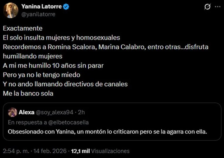 LA PELEA A MUERTE DE YANINA LATORRE CON BETO CASELLA
