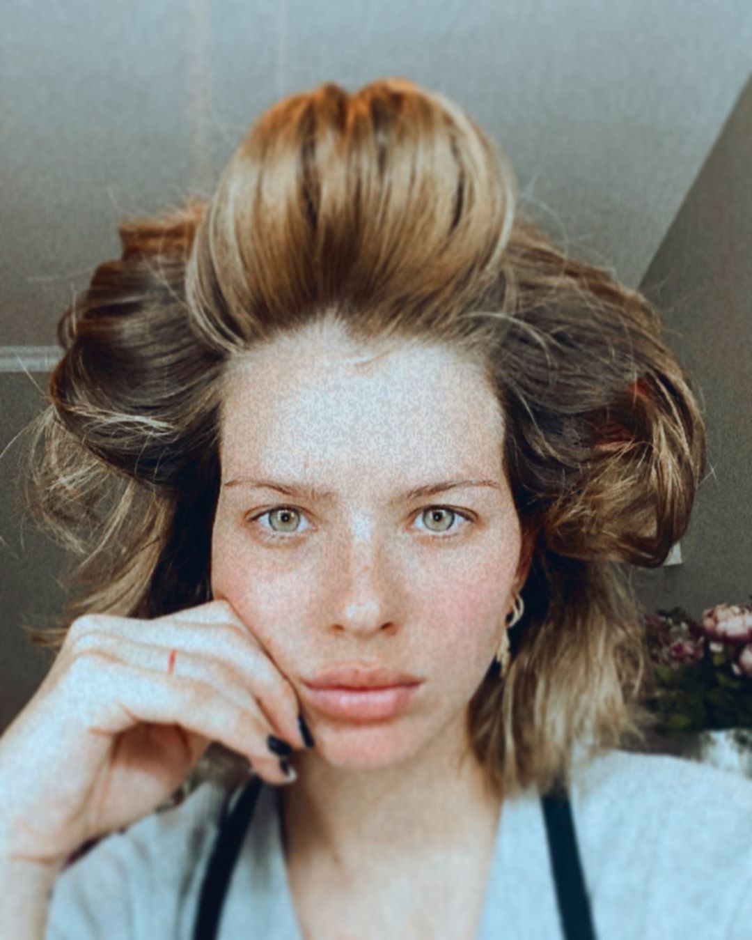 "Volvieron los ruleros. Post fueguito, baño de espuma de chicas, ojos irritados", escribió en la publicación de Instagram.