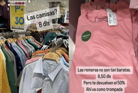 Como si fuera poco, Brancatelli viajó a Qatar para ver el Mundial y en sus redes muestra su día a día. Ahora bien, hace algunas horas, sorprendió al mostrar que fue de compras y quedó en shock al ver la gran diferencia de precios: "Las remeras no son tan baratas… 6.50 dólares, pero te devuelven el 50%. Ahí va como trompada".