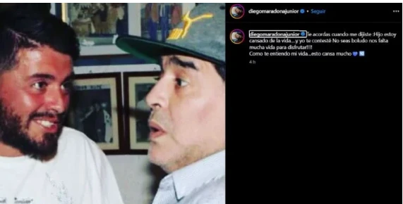 “¿Te acordás cuando me dijiste: ‘Hijo, estoy cansado de la vida’?”, arrancó en su posteo el mayor de los herederos del crack. Así le añadió una infidencia de lo que dialogaba con su papá y redactó: “Yo te decía no seas boludo, nos falta mucha vida para disfrutar”.