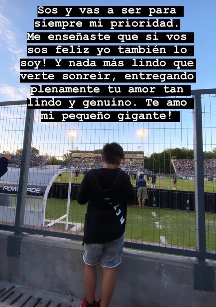 Pero hace unas horas, sorprendió a sus seguidores de Instagram con una publicación de su papa con su hijo, Benjamín. En la fotografía, se los ve a ambos abrazados en la cancha del equipo platense.