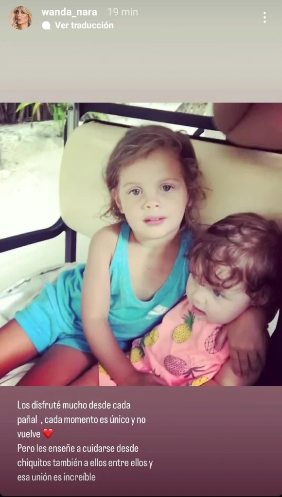 En ese contexto e interactuando con su seguidores, la blonda le dedicó una seguidilla de historias a aquellos usuarios que acostumbraban a consultarle o felicitarla por su rol de madre. Empezando por destacar una vez que ella no lleva niñeras a sus vacaciones, Wanda explicó como hizo siempre para organizarse con los niños.