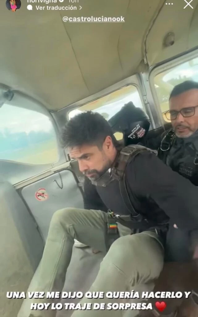 En las imágenes que iba compartiendo Florencia se veía la avioneta y ya Castro dentro de ella preparándose para la aventura a lo que Vigna contenta por lo que estaban por vivir comentó: “Una vez me dijo que quería hacerlo y hoy lo traje de sorpresa”.