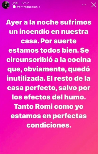"Ayer a la noche sufrimos un incendio en nuestra casa", informó el propio Rial en su cuenta de Instagram, aún sacudido por el ingrato acontecimiento. "Por suerte estamos todos bien", agregó enseguida para llevar tranquilidad tanto a los familiares como a los amigos y a los conocidos. Posteriormente explicó que el fuego "se circunscribió a la cocina que, obviamente, quedó inutilizada".