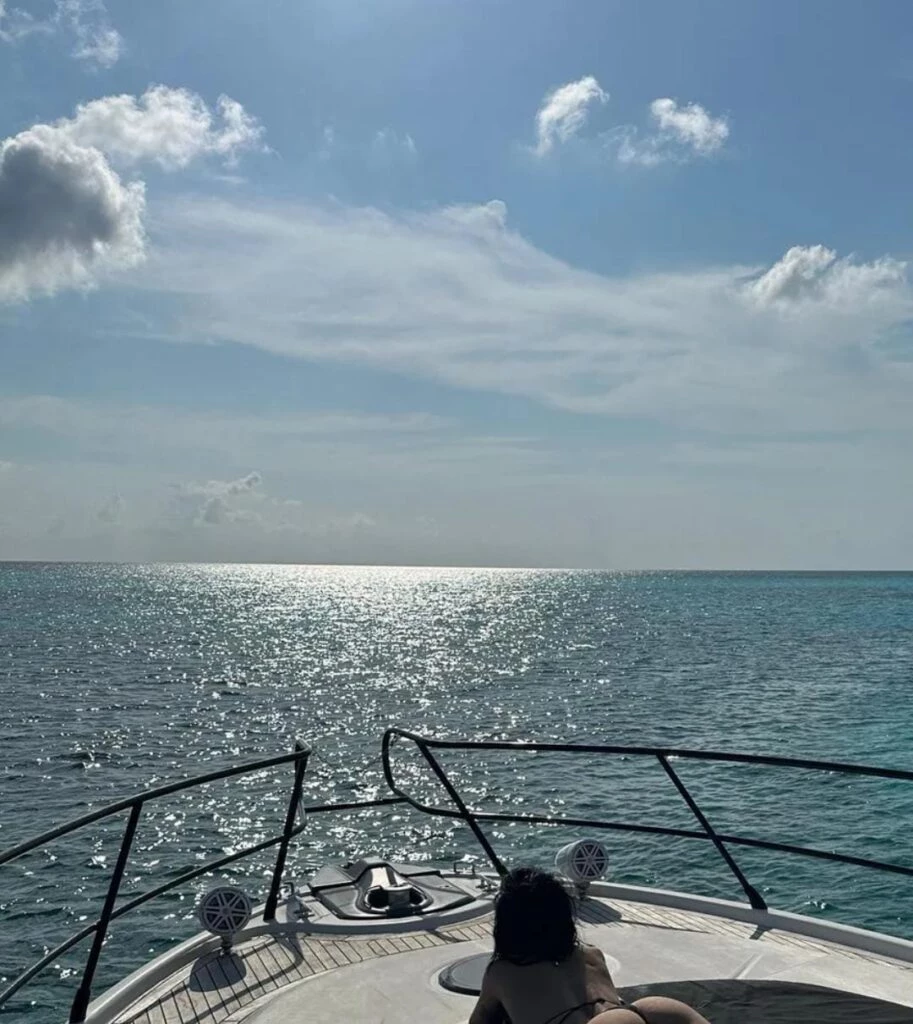 En las instantáneas se ven distintos paisajes desde el yate, así como selfies por parte de ambos artistas, entre ellas una de Lali mostrando su pelo oscuro y como la había bronceado el sol.