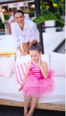 La pequeña, lucía en un encantador vestido fucsia con un tutú de bailarina, además tenía strass en el rostro y un elegante rodete en el cabello. Las imágenes revelan la presencia de globos, mesas decoradas con platos y vasos en tono rosa, así como mini sillas, inflables y un espectáculo en vivo. Una gran caja de Barbie también estuvo disponible para que los invitados y la homenajeada pudieran capturar divertidas instantáneas.