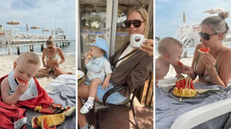 Según fueron compartiendo los papás de Beltrán, el nene no sólo voló en avión y conoció nuevos lugares sino que además viajó por primera vez en yate. Tras regresar del paseo en medio de las aguas la familia jugó en la arena y se refrescó en el mar.