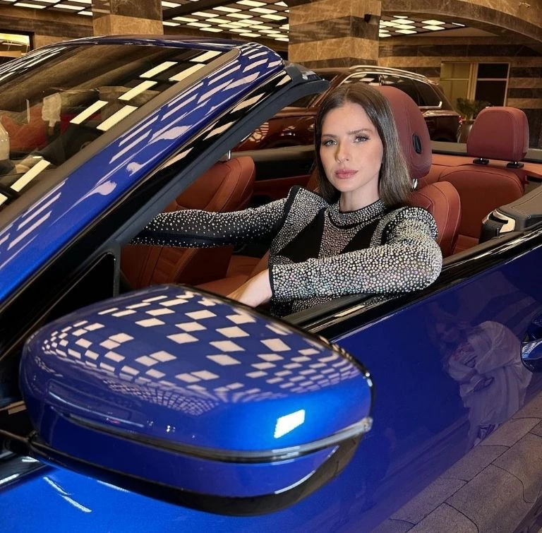 En su perfil compartió las imágenes en donde se la vio junto a un lujoso auto. Además eligió una remera de gasa de mangas largas con cristales y hombreras, junto a un pantalón de vinilo bien ajustado y sandalias de taco algo y fino.