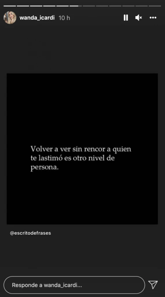 "Volver a ver sin rencor a quien te lastimó, es otro nivel de persona", publicó la representante en las últimas horas, dando cuenta de dónde está parada hoy, mientras la versión de que el matrimonio está definitivamente terminado suena cada vez más fuerte, a pesar de los esfuerzos denodados de los dos de ponerle onda.