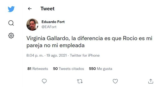 Para cerrar, ahora mediante Twitter, Virginia fue lapidaria y le puso la tapa al bueno de Eduardo: “Me hubiera encantado ser heredera de un imperio”, escribió. ¿Fin o comienzo de un nuevo escándalo?