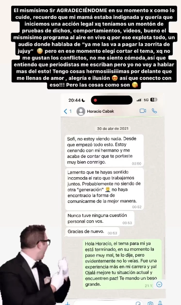 En este sentido, el periodista comenzó a jactarse de su buena relación con la mayoría de sus compañeros para así desestimar los reclamos de Sofía Jujuy Jiménez, quien en su momento marcó la mala relación laboral que existía entre ellos.