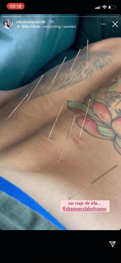 Horas más tarde, y ante la curiosidad de su gente que le preguntaba en las redes sobre esa práctica que realiza, Nico escribió, “la acupuntura es una técnica que forma parte de la medicina tradicional china y consiste en la manipulación de unas agujas que van a en puntos concretos para aliviar dolencias”.