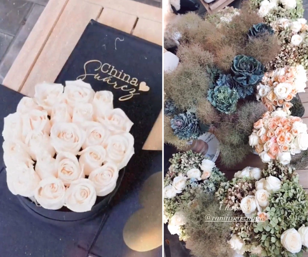Continuando con las decoraciones, Suárez lució cómo se verá su increíble mesa que fue decorada por Ramiro Arzuaga, el organizador de eventos que le realizó el cumpleaños a Mirtha Legrand, y compartió los espectaculares ramos de hortencias que adornarán el sector de comida y además mostró toda la vajilla elegida en tonos blanco y dorado.