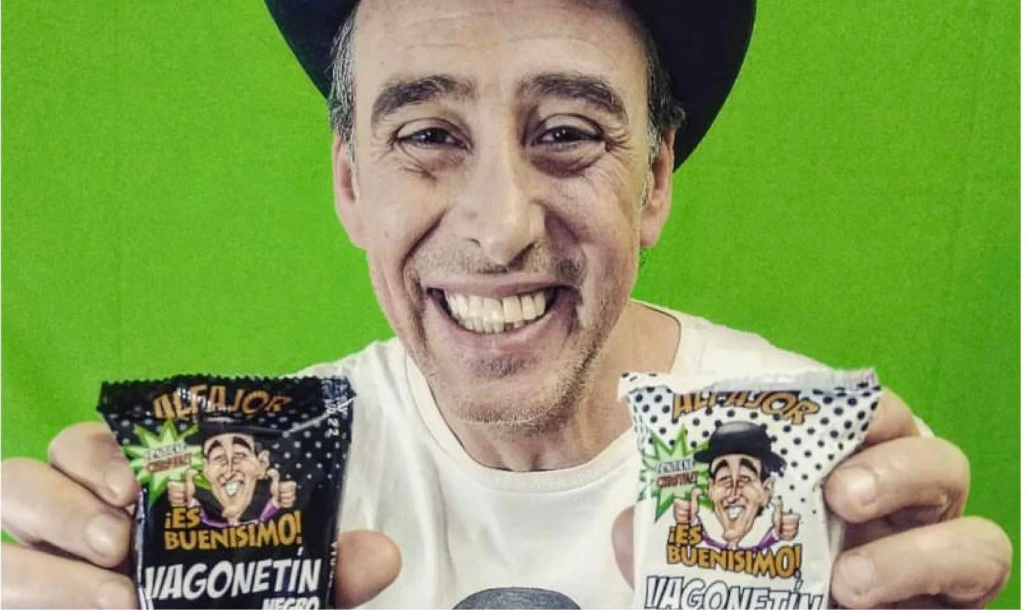 Rodrigo lanzó marca de alfajores de chocolate blanco y negro llamados Vagonetín, cuestan 90 pesos y en su interior vienen con chistes del humorista