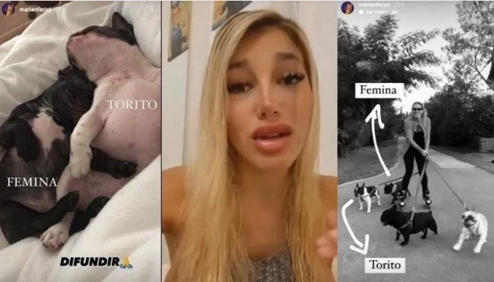 Marian Farjat mostró a través de las redes, el difícil momento que atraviesa. Este fin de semana sus perros de perdieron en el barrio privado dónde vive y hasta el momento no pudo dar con ellos. La ex participante de Gran hermano, hizo un desesperado pedido a través de la red.