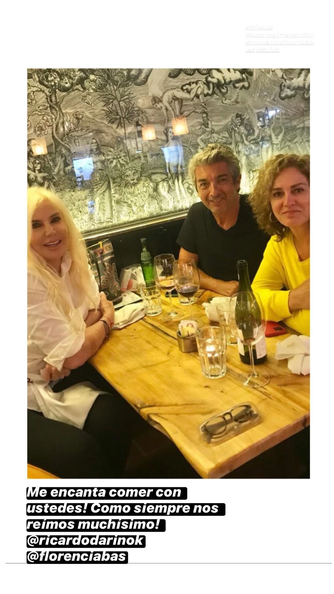 "Me encanta comer con ustedes, como siempre nos reímos muchísimo", publicó la Su en una historia de Instagram con una foto junto a Ricardo y Florencia.
