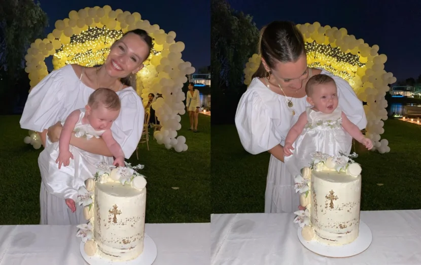 La modelo y el empresario gastronómico bautizaron a su beba, que está a punto de cumplir cinco meses, y luego realizaron una bella fiesta en su mansión que posee un enorme jardín, piscina y todas las comodidades para recibir a sus invitados.