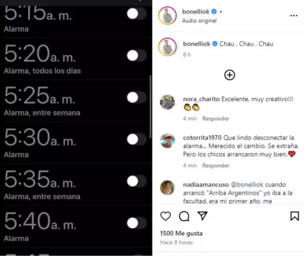 “Qué lindo es desconectar la alarma. Merecido cambio. Te extrañaremos, pero los nuevos conductores arrancaron muy bien", indicó una usuaria.
