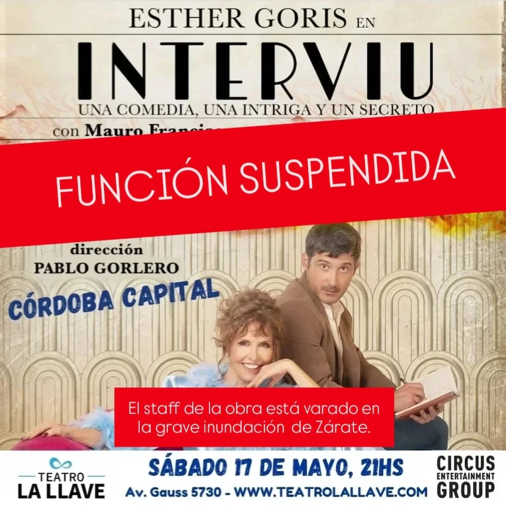 Interviú, obra de teatro que realiza Goris y que este sábado tendría función en el Teatro La Llave, finalmente fue suspendida debido a las malas noticias que se registraron. Esther, por su parte, no se encontraban en el auto a bordo dado a que viajó en avión.