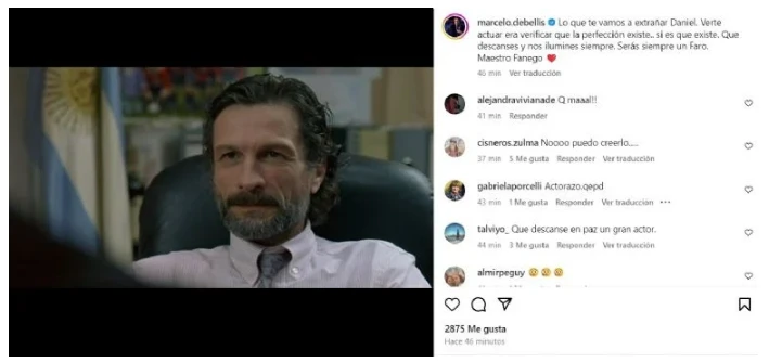 Marcelo de Bellis le dedicó un halago muy bonito: “Lo que te vamos a extrañar Daniel. Verte actuar era verificar que la perfección existe. si es que existe. Que descanses y nos ilumines siempre. Serás siempre un faro. Maestro, Fanego”.