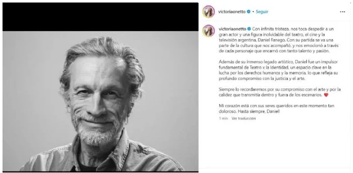 En tanto que Victoria Onetto se tomó un tiempo para reflexionar sobre diversas aristas de Fanego y creó un texto profundo: “Además de su inmenso legado artístico, Daniel fue un impulsor fundamental de Teatro por la Identidad, un espacio clave en la lucha por los derechos humanos y la memoria, lo que refleja su profundo compromiso con la justicia y el arte. Siempre lo recordaremos por su compromiso con el arte y por la calidez que transmitía dentro y fuera de los escenarios”.