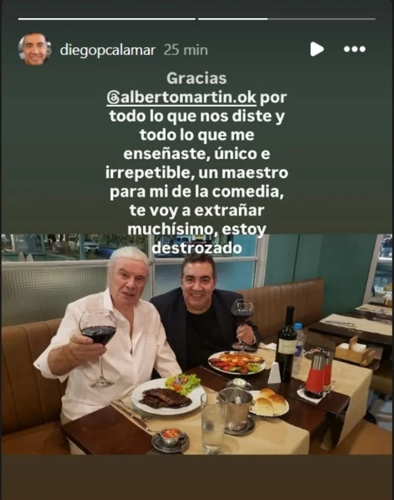 Diego Pérez, quien aprendió y compartió mucho junto a Martín, lo recordó con profunda emoción: “Gracias, Alberto Martín, por todo lo que nos diste y todo lo que me enseñaste. Único e irrepetible. Un maestro para mí de la comedia. Te voy a extrañar muchísimo. Estoy destrozado”.
