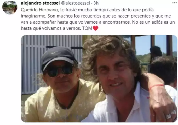 Además, Tini compartió en su cuenta de Twitter el mensaje de su papá, Alejandro Stoessel: "Querido hermano, te fuiste mucho tiempo antes de lo que podía imaginarme. Son muchos los recuerdos que se hacen presentes y que me van a acompañar hasta que volvamos a encontrarnos. No es un adiós, es un 'hasta qué volvamos a vernos'. Te quiero mucho", escribió. "Te voy a amar toda la vida. Te voy a recordar así porque esta era la relación que teníamos. Te amo Rodo", publicó, por su parte, Mariana Muzlera.