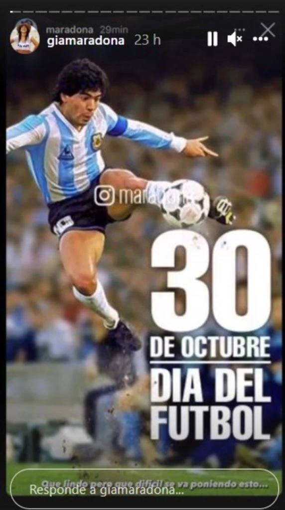 Además, la hija del astro comenzó a compartir las imágenes en donde la etiquetan que demuestran que las camisetas, los grafitis, los tatuajes y los homenajes a Diego están alrededor del país; y conmovió a todos al republicar una foto que colocaron en la cuenta oficial de Maradona, la cual es manejada por todos sus hijos.