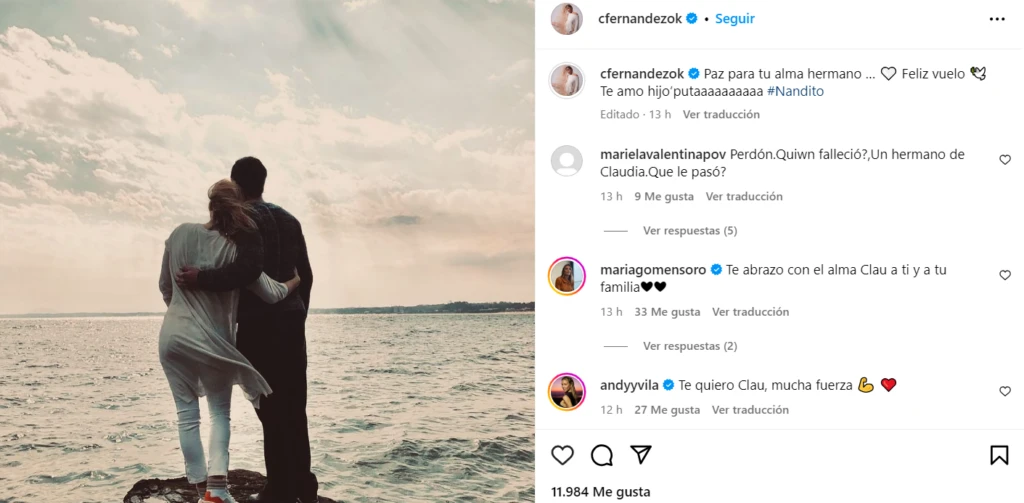Fernando era el único hermano varón de Fernández, que venía de festejar los carnavales en Melo. Papá de una nena, esperaba su segundo hijo con su pareja. "Paz para tu alma hermano. Feliz vuelo. Te amo hijo’puta", expresó Claudia, desolada, y en otro posteo deseó que su alma “encuentre paz y música”.