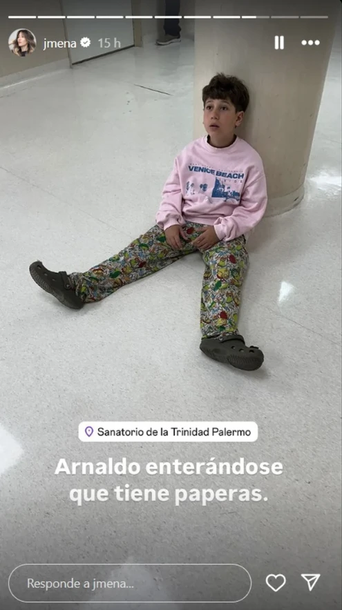 Luego la niñera agregó: “Pero ahora él dice que está bárbaro, que justo cuando yo llegué, él bajaba para decirles a las maestras que me llamen y que no lo vaya a buscar porque ya estaba bien. Pero le dije que va a estar bueno que igualmente lo vea un médico”. A las horas les dieron el diagnóstico y Momo se frustró al perderse este viaje tan deseado: “Arnaldo, enterándose de que tiene paperas”, escribió Barón al pie de una foto donde se lo puede ver a su hijo tirado en el piso de la guardia y ofuscado.