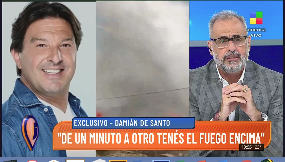 Dentro de muchísimas frases emotivas, el artista reconoció que tuvo un ángel que le salvó su vivienda, un aviador que divisó las llamas en un quincho y soltó una carga grande de agua. Además, De Santo aportó la dimensión de la velocidad arrasadora del fuego: "Se quemó la vegetación autóctona. El fuego pasó por arriba de las cabañas. El viento cambió y en media hora teníamos las llamas en la puerta".