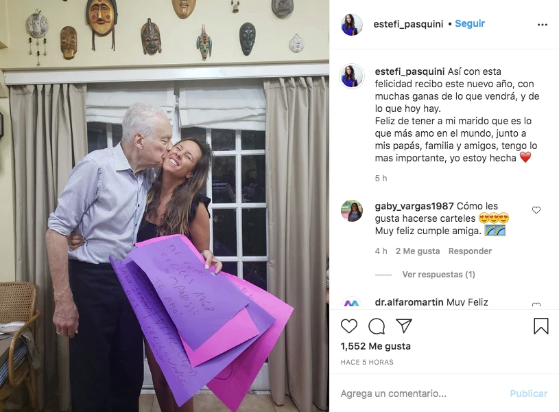 La nutricionista comenzó el día de su natalicio recibiendo el cariño de su esposo 48 años mayor. "Con esta felicidad recibo este nuevo año, con muchas ganas de lo que vendrá, y de lo que hoy hay”, escribió junto a una foto en la que se la ve sonriente recibiendo un beso del célebre doctor.