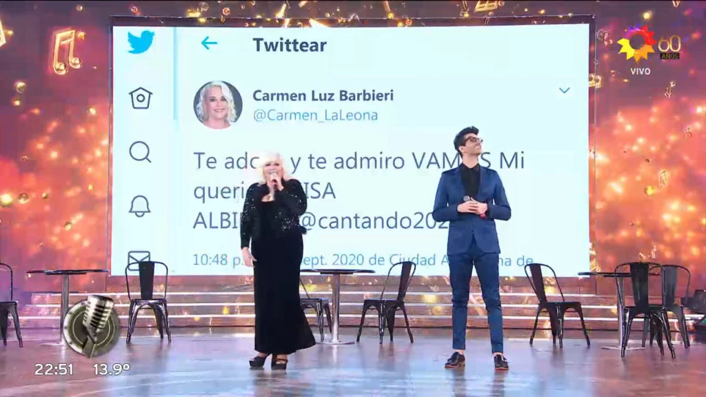 “Antes de cantar, tenemos una sorpresa para vos. Alguien que te quiere mucho te dice lo siguiente” comenzó explicando Ángel De Brito. A continuación, mostraron en la pantalla un video de su hija enviándole un mensaje de fuerza y amor, que desestabilizó a la artista y le llenó los ojos de lágrimas: “Hola ma, estoy feliz de que estés en el Cantando. Mucha mer, te mando un beso y te amo”.