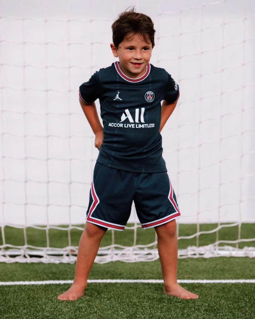 El niño nació en 2015 en Barcelona. Actualmente Mateo juega en las categorías infierores del PSG al igual que sus hermanos Thiago y Ciro.