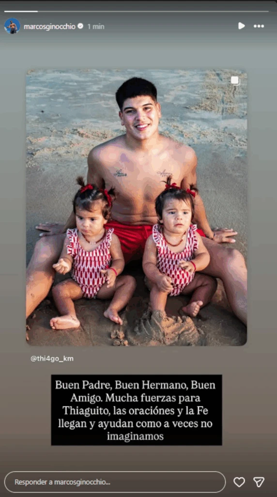 Marcos decidió sumarse a la convocatoria de la familia y publicó un mensaje. Minutos antes de la cadena, compartió en Instagram una imagen de Thiago con sus dos hijas, Laia y Aimé. “Buen padre, buen hermano, buen amigo”, escribió conmovido el ganador de Gran Hermano 2022.