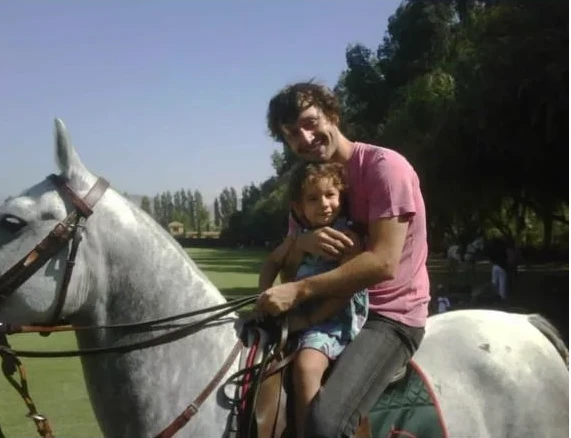 En la primera foto, se lo ve montado a un caballo junto a la niña, abrazados y sonrientes, mientras disfrutan de un paseo y de la naturaleza. Luego, fotografió un adorno formado por dos mariposas y de fondo flores blancas.