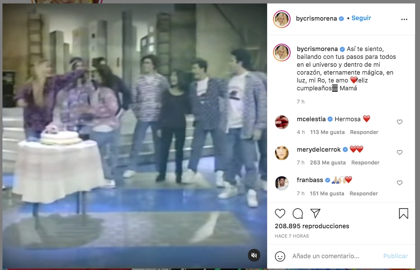 Como si fuese poco, Cris escribió unas líneas conmovedoras: “Así te siento, bailando con tus pasos para todos en el universo y dentro de mi corazón, eternamente mágica, en luz, mi Ro, te amo. Feliz cumpleaños. Mamá”.