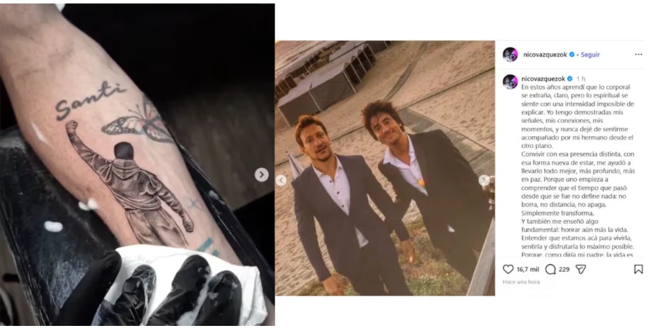 Una fecha compleja, sumamente difícil de transitar. Nicolás Vázquez decidió imprimirle otro simbolismo a un día siempre doloroso, el que recuerda el triste desenlace de su hermano Santiago. A nueve años de esa partida física, el actor llevó a cabo una determinación muy emotiva.