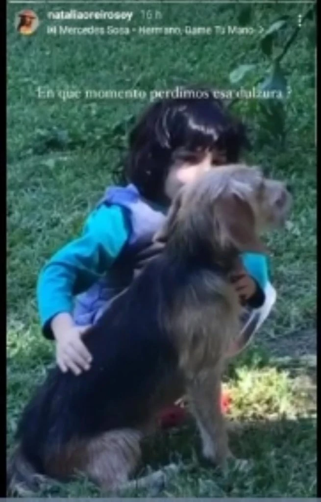 "¿En qué momento perdimos esa dulzura?”, escribió Natalia sobre las imágenes de su pequeño acariciando a la mascota que muy tranquilamente disfrutaba de esos mimos. Y fue para ese momento capturado que la actriz decidió ponerle una hermosa melodía de fondo, eligiendo así el tema Hermano dame tu mano, de la gran artista fallecida Mercedes Sosa.