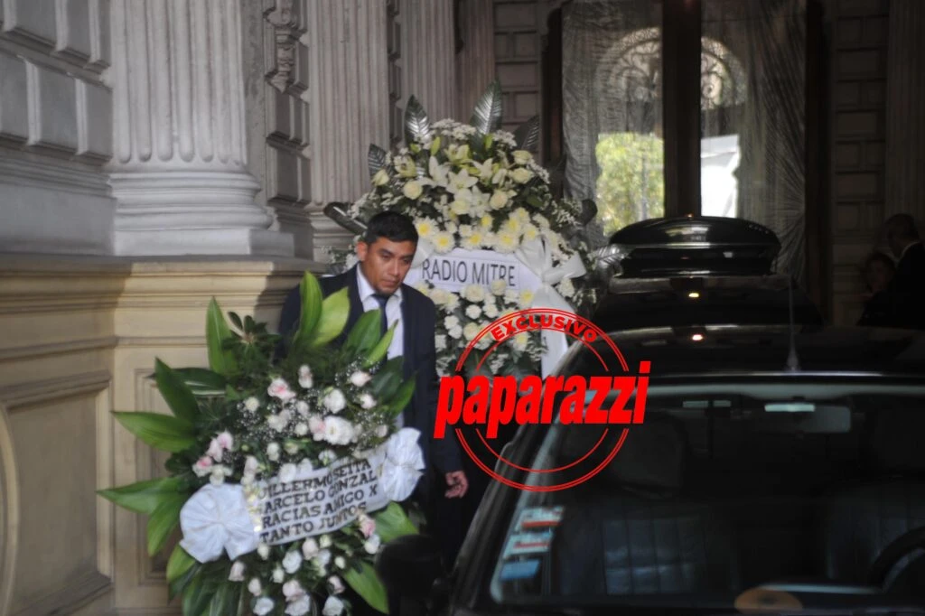 En el momento que se hizo presente el cortejo fúnebre, los medios presentes que se encontraban realizando la guardia periodística y las cientos de personas que hicieron la fila para saludarlo, hicieron un pasillo para que pudiera pasar el auto con el cajón y comenzaron a entonar el Himno Nacional Argentino como muestra de respeto.
